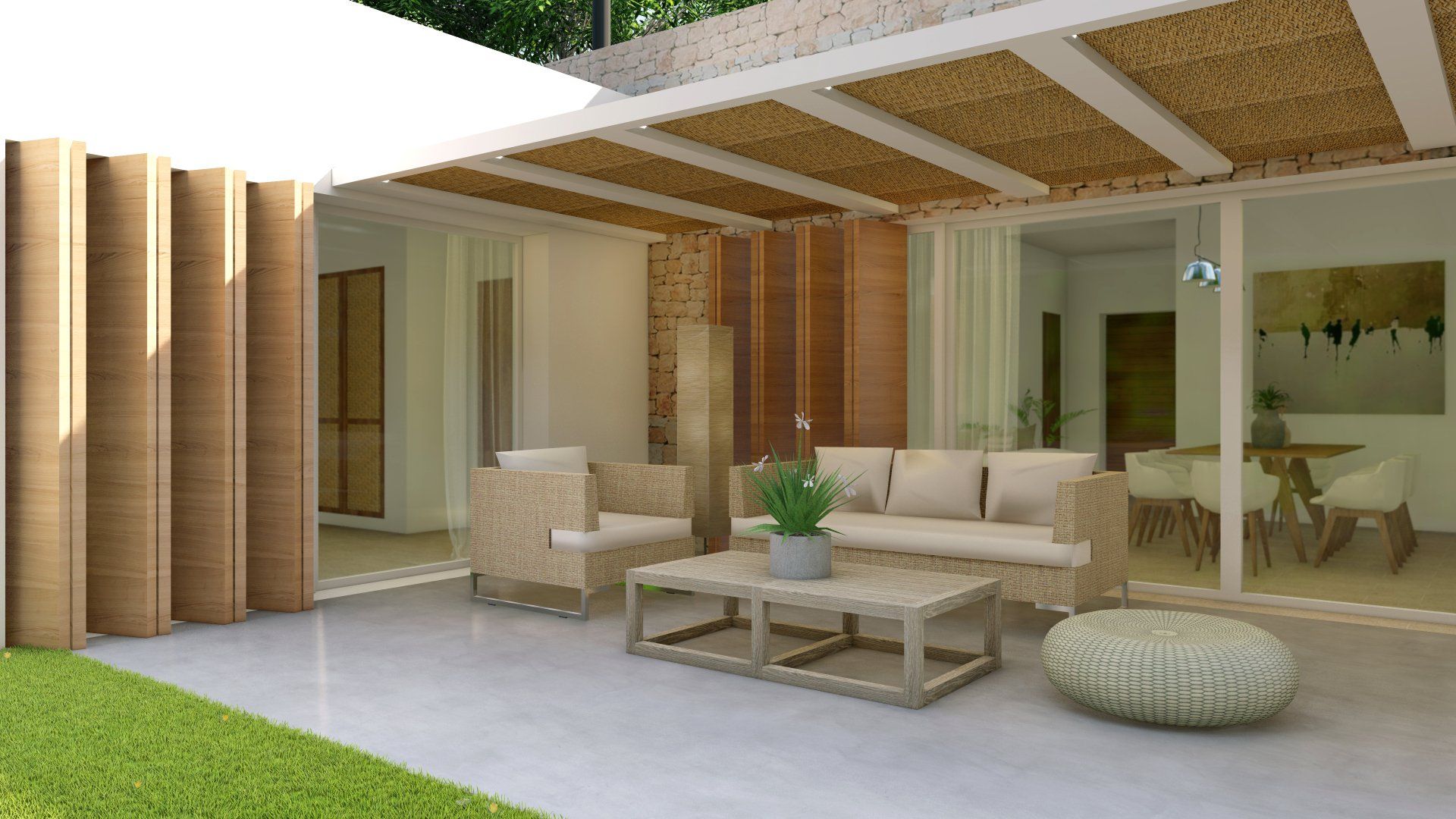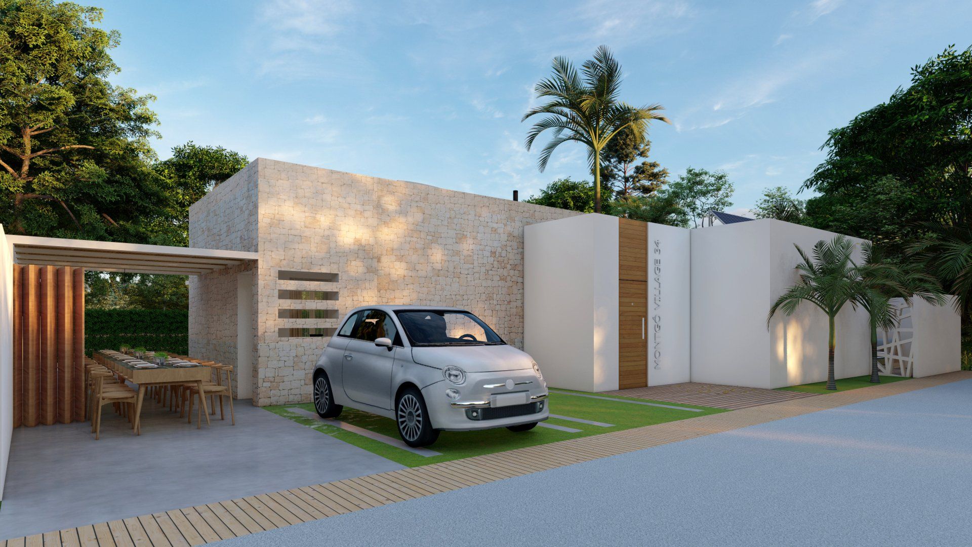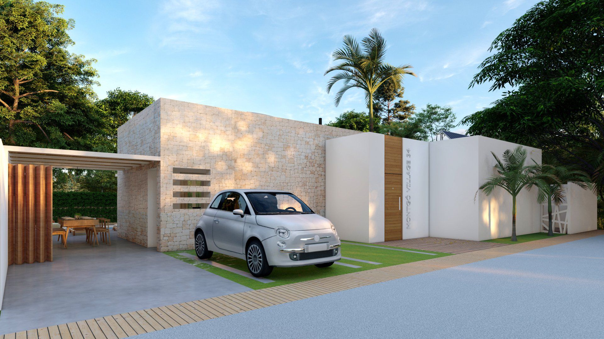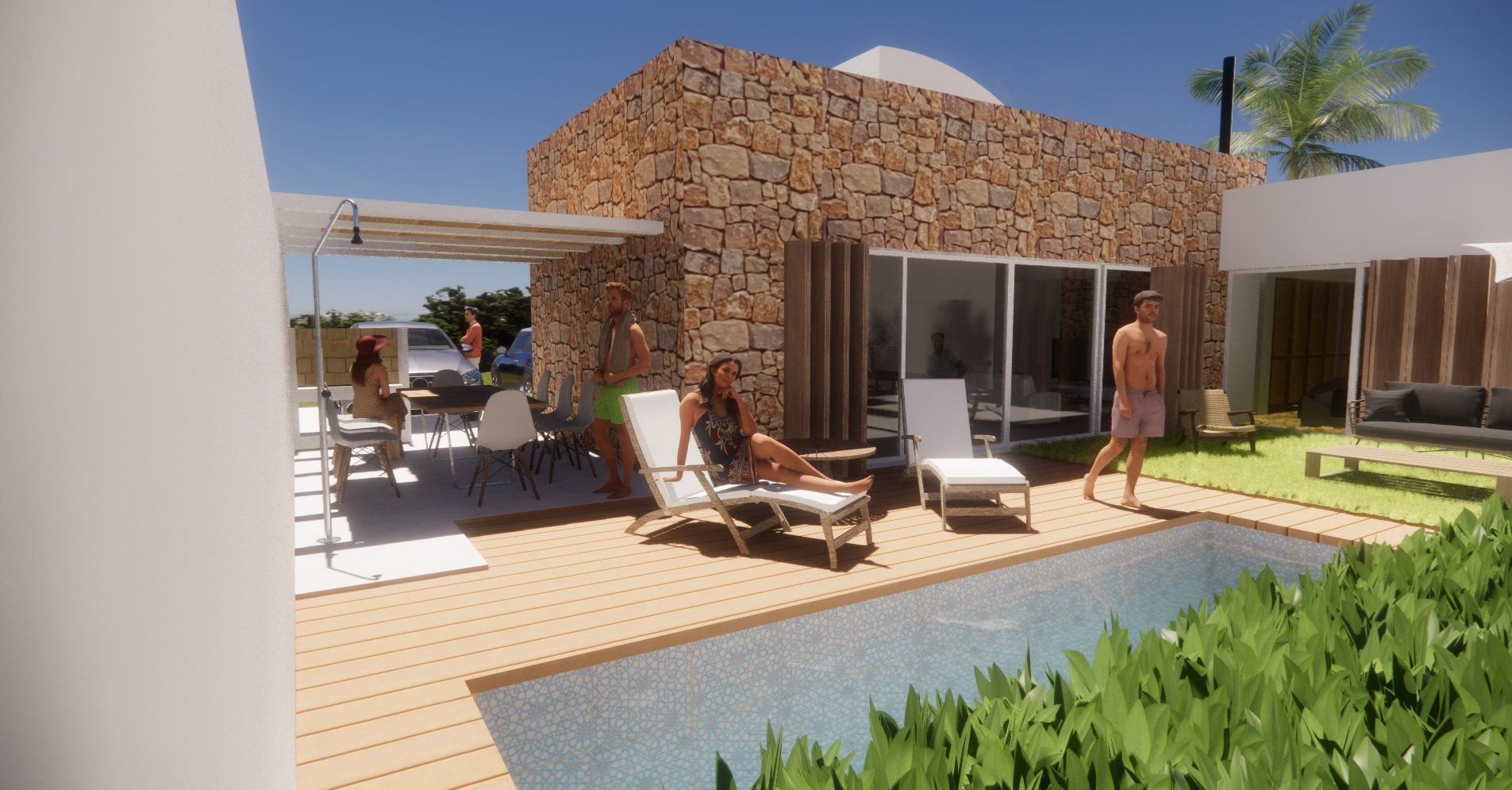 Einfamilienhausprojekt in der Urbanisation Montgó Village in La Pedrera de Denia. Es geht darum, den ibizenkischen Stil zu aktualisieren, ohne seine Essenz in Farben, Formen und Kompositionen einer Pflanze zu verlieren
