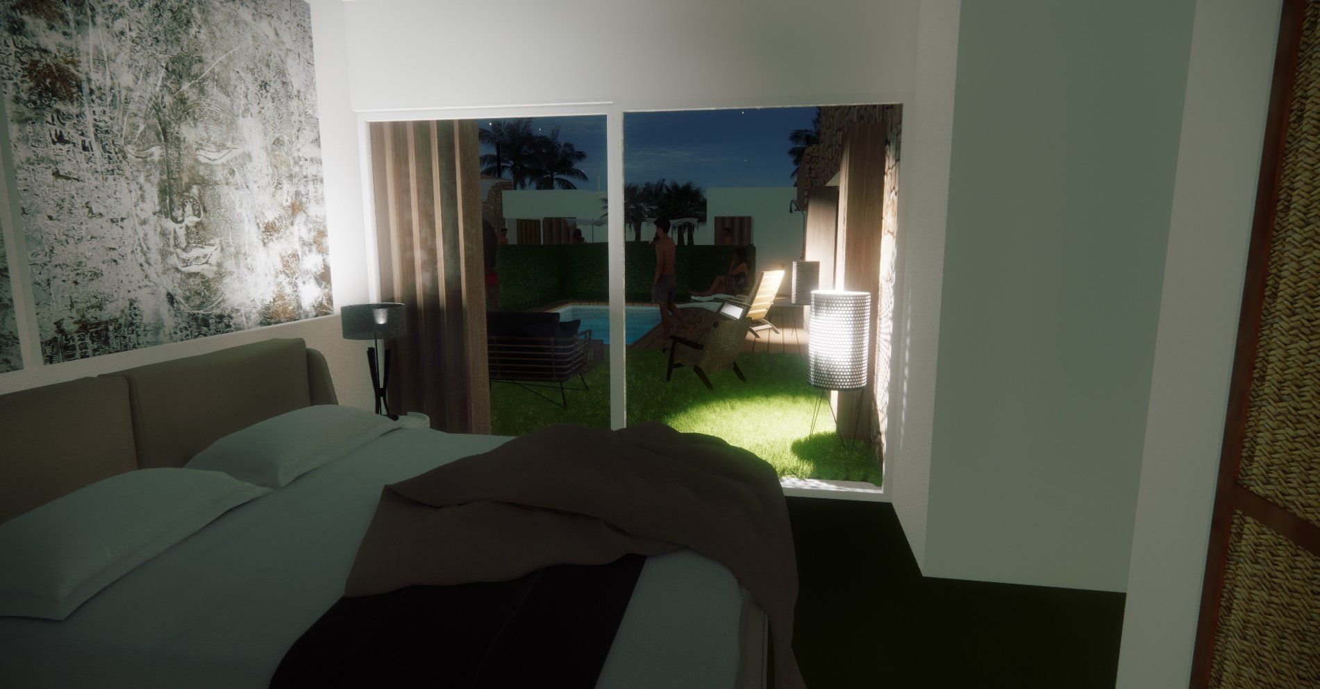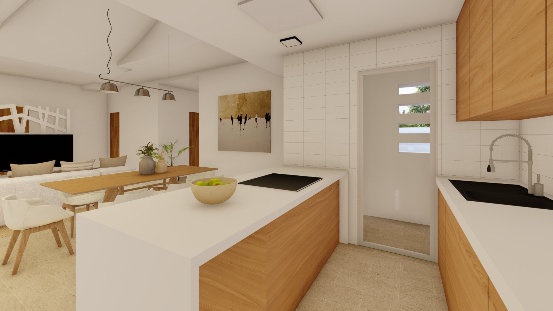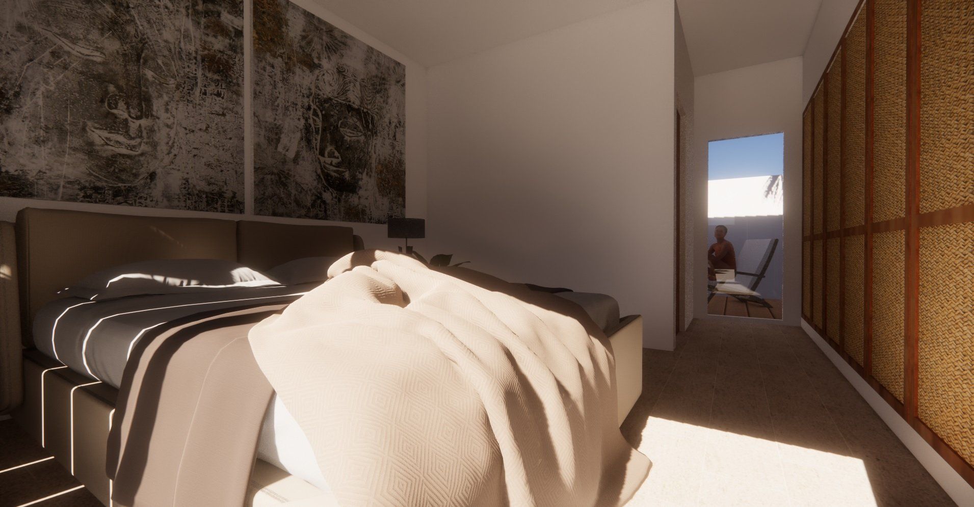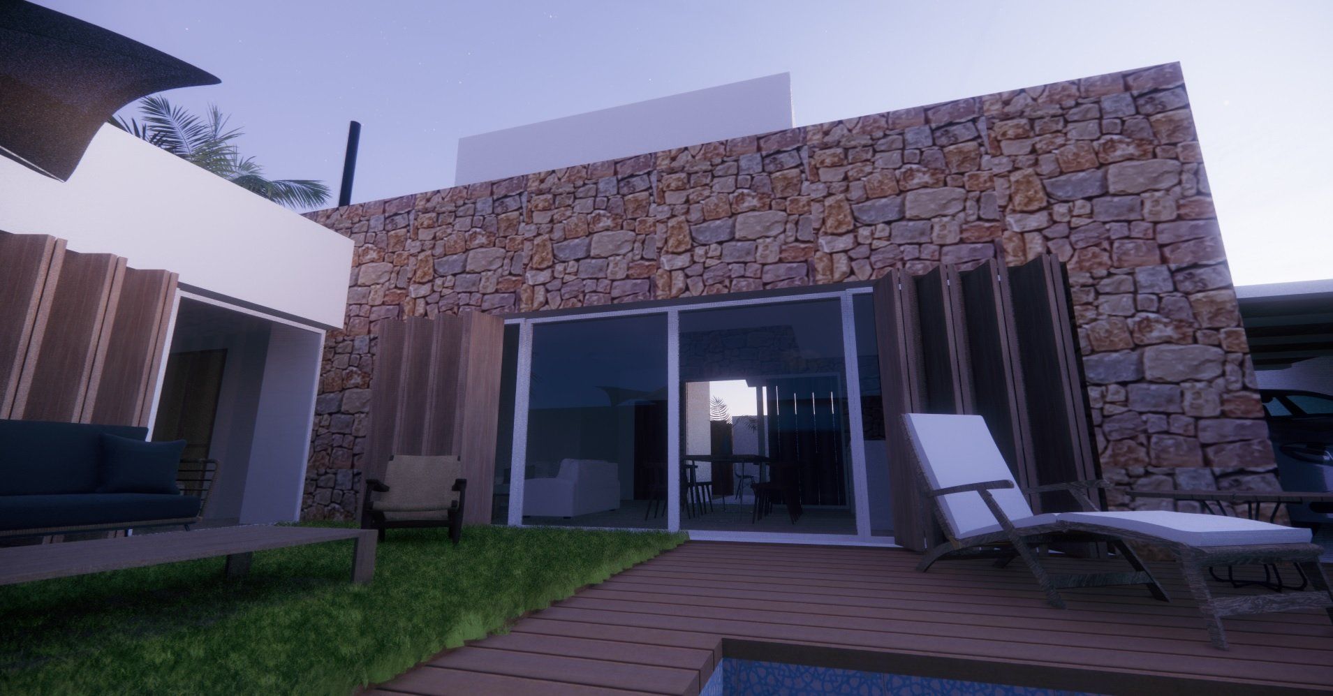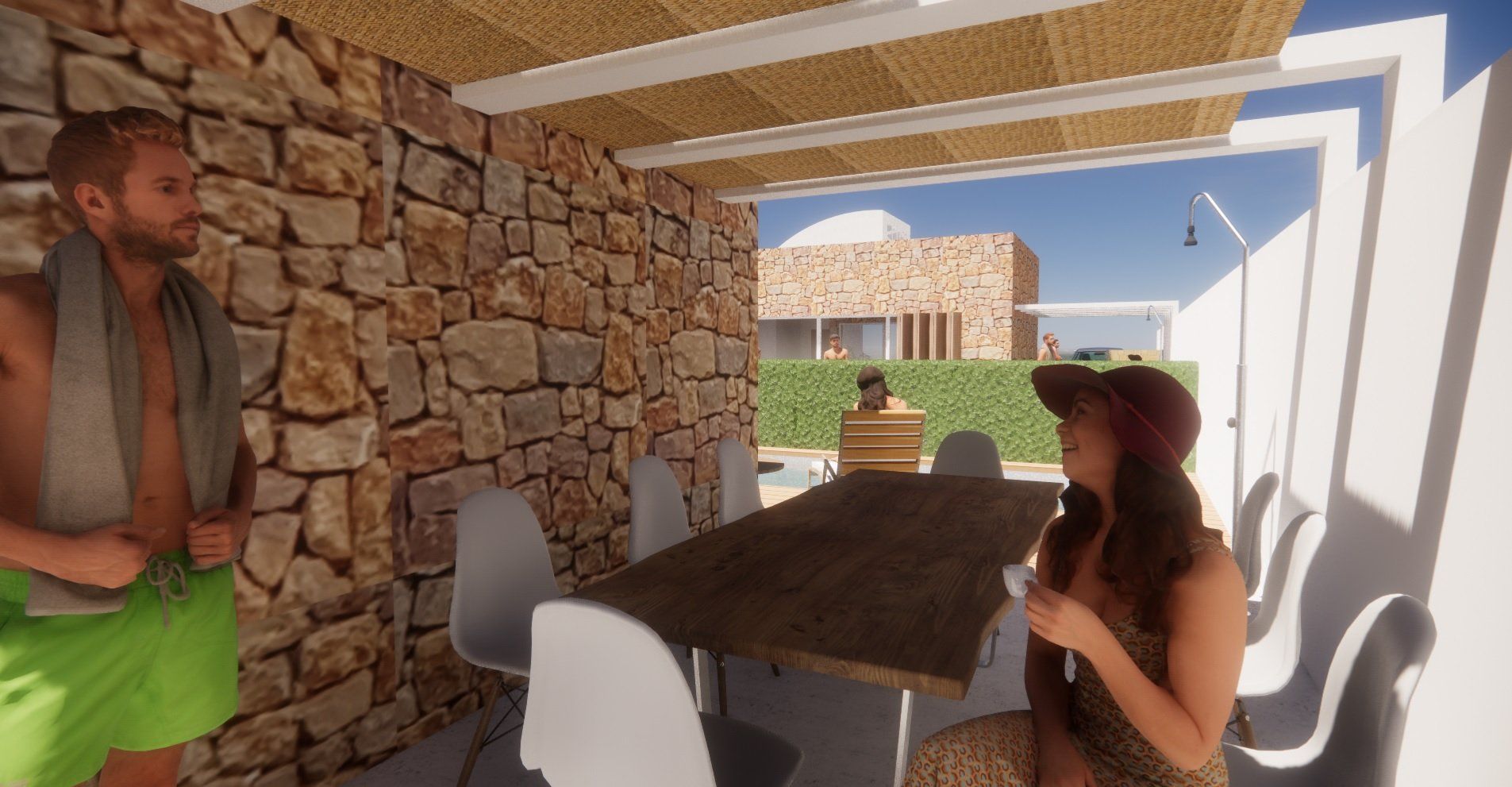 Einfamilienhausprojekt in der Urbanisation Montgó Village in La Pedrera de Denia. Es geht darum, den ibizenkischen Stil zu aktualisieren, ohne seine Essenz in Farben, Formen und Kompositionen einer Pflanze zu verlieren