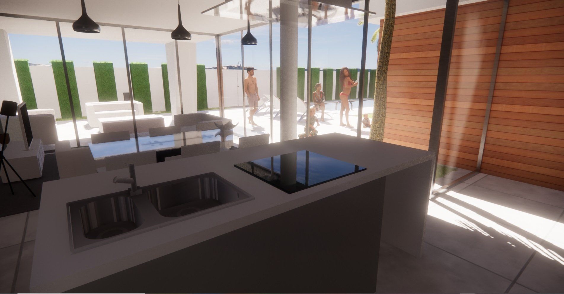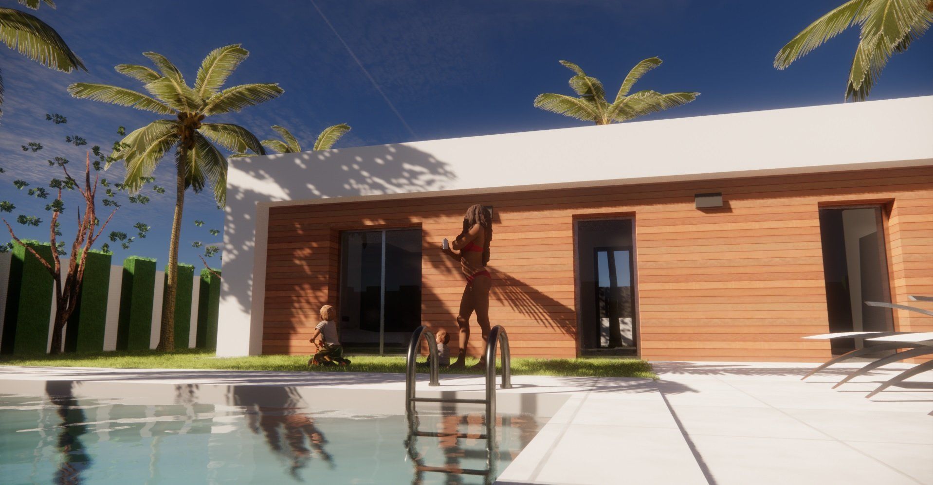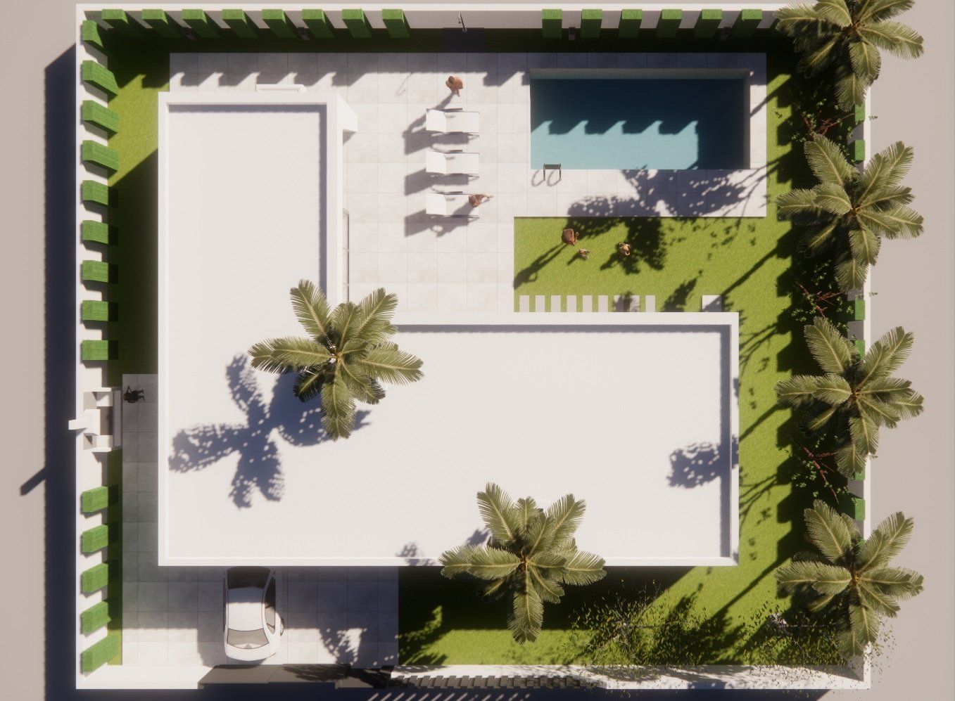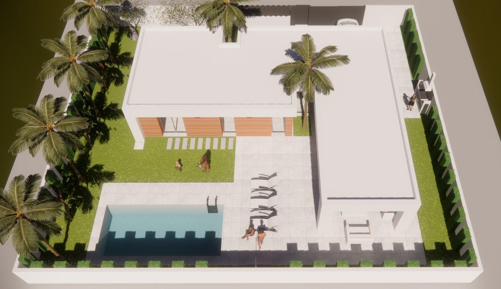 Gut aufgelöste Architektur, insbesondere unter Berücksichtigung der Sonnenausrichtung und der Tag- und Nachtbereiche, ohne die Gartenbereiche zu vergessen. Ein hervorragendes und kompaktes Ergebnis