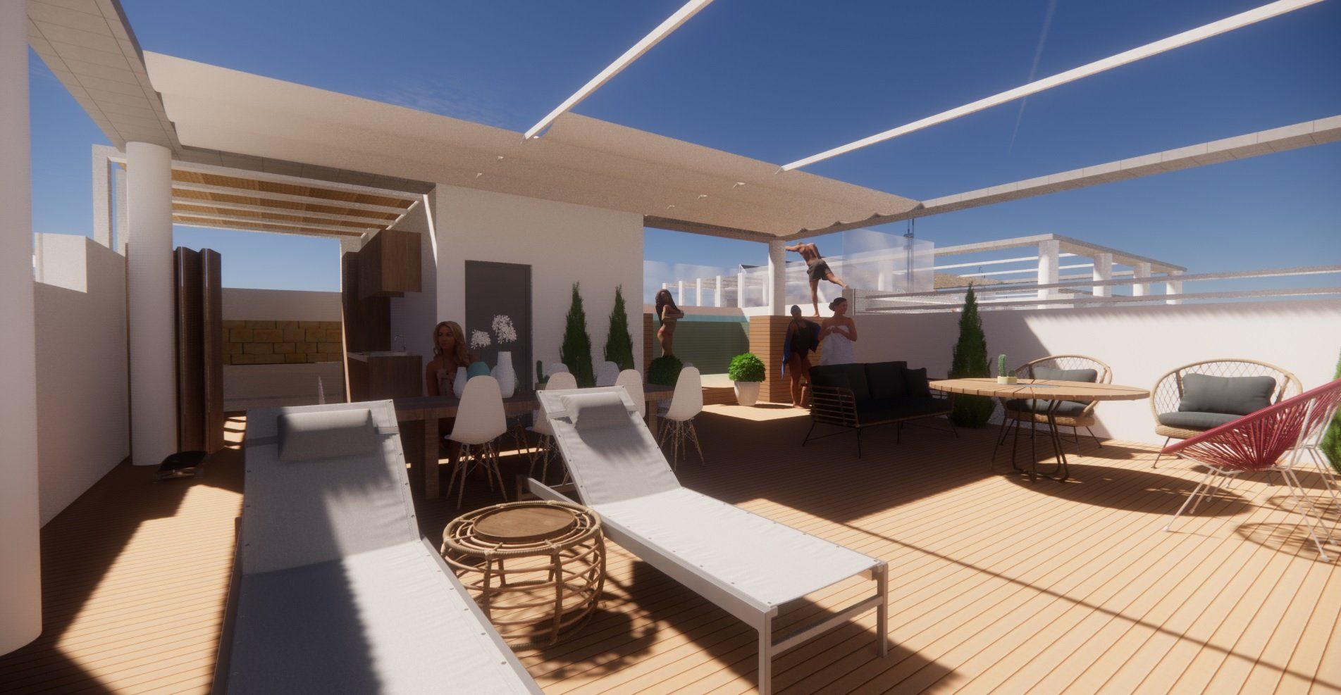 Singular and elegant urbanization of 11 luxury villas in the most exclusive area of Rocafort. 5 bedrooms, storage room, service room, 3 bathrooms and a spectacular terrace-penthouse with private pool and African kitchen. A luxury of 350 m2 built.