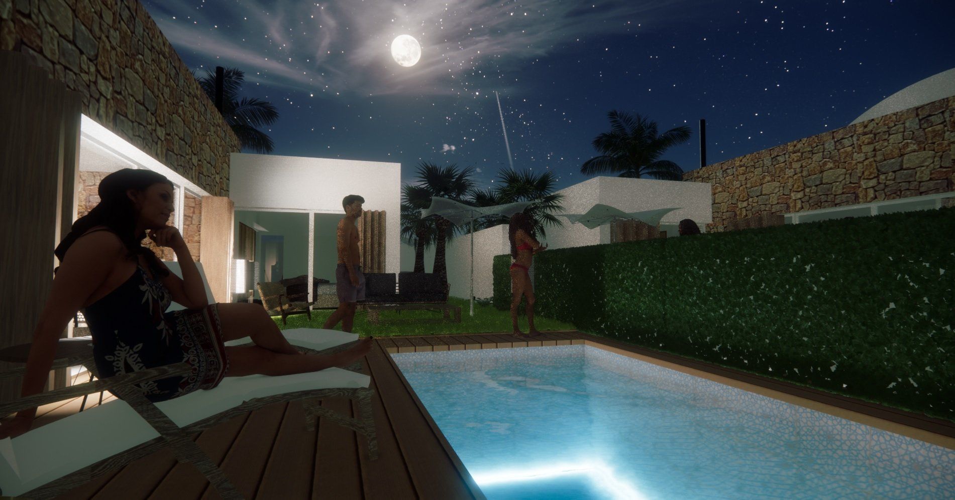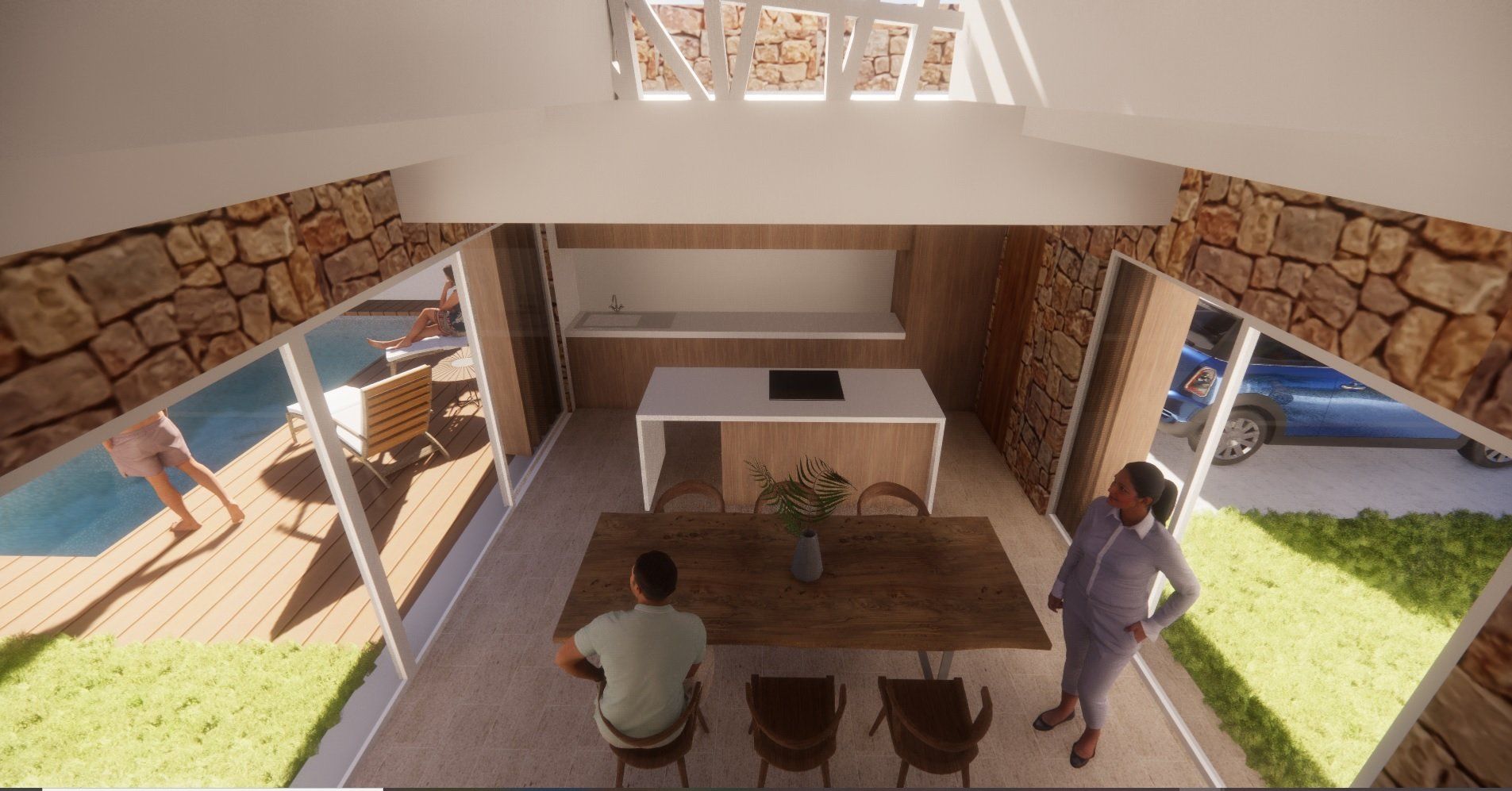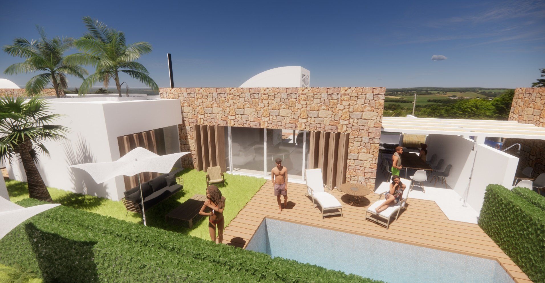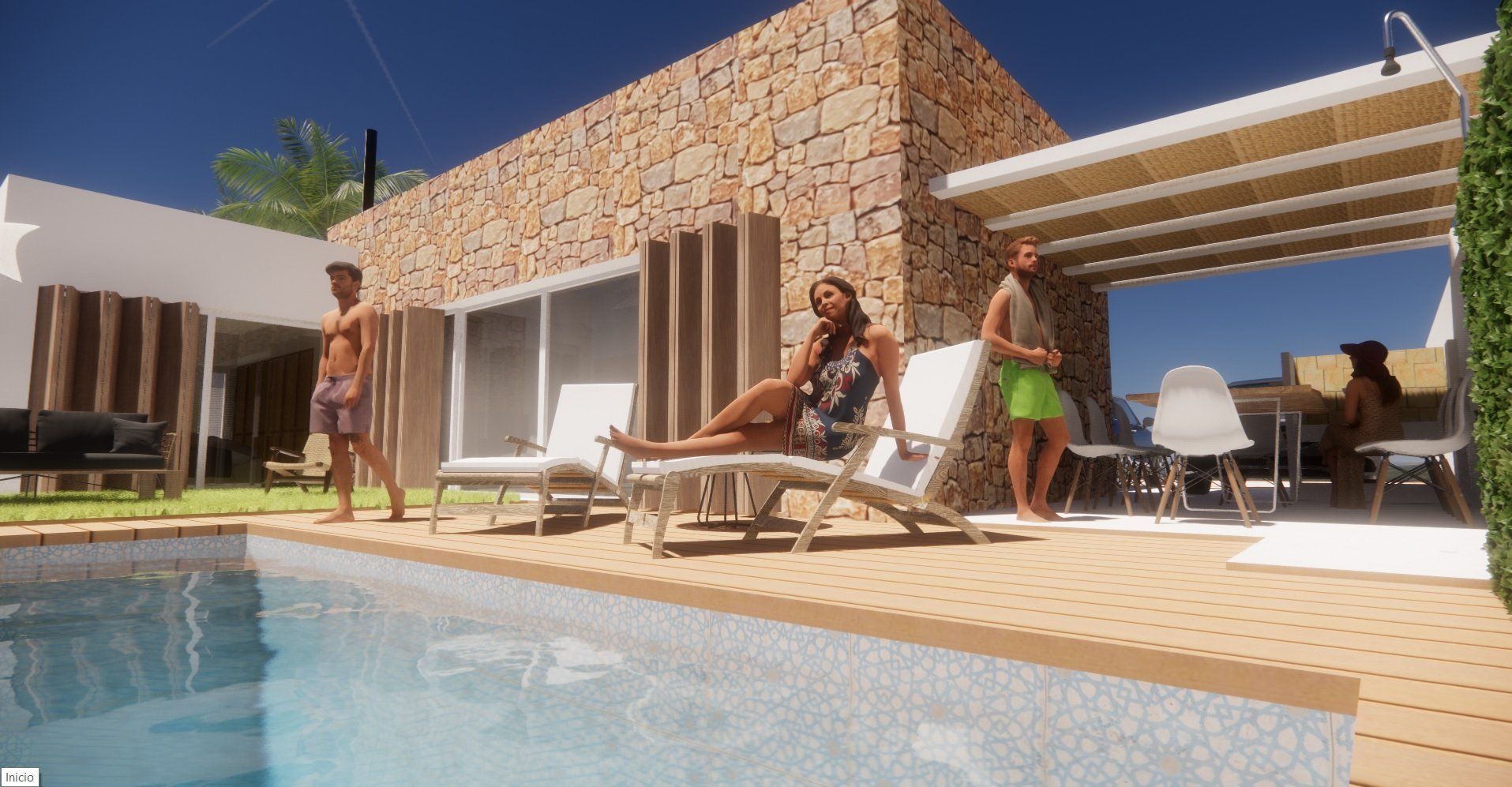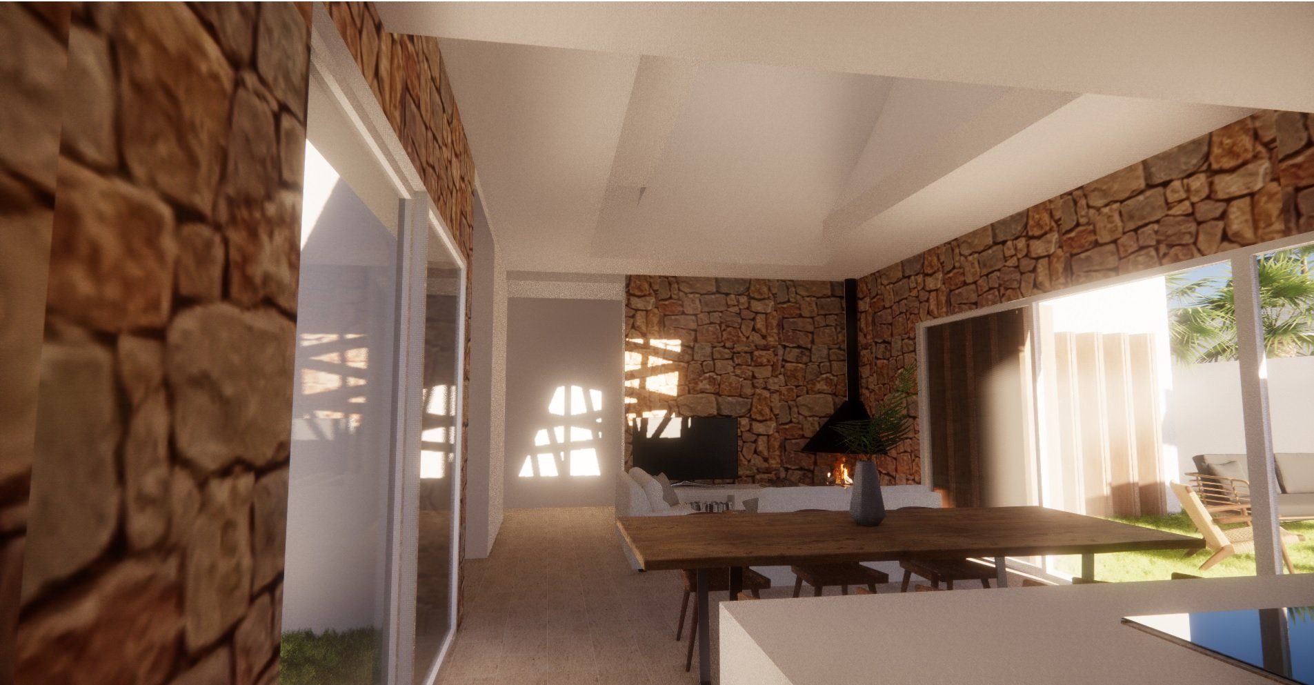 Proyecto de vivienda unifamiliar dentro de la urbanización Montgó Village en La Pedrera de Denia. Se trata de actualizar el estilo ibicenco sin perder su esencia en colores, formas y composición en una planta