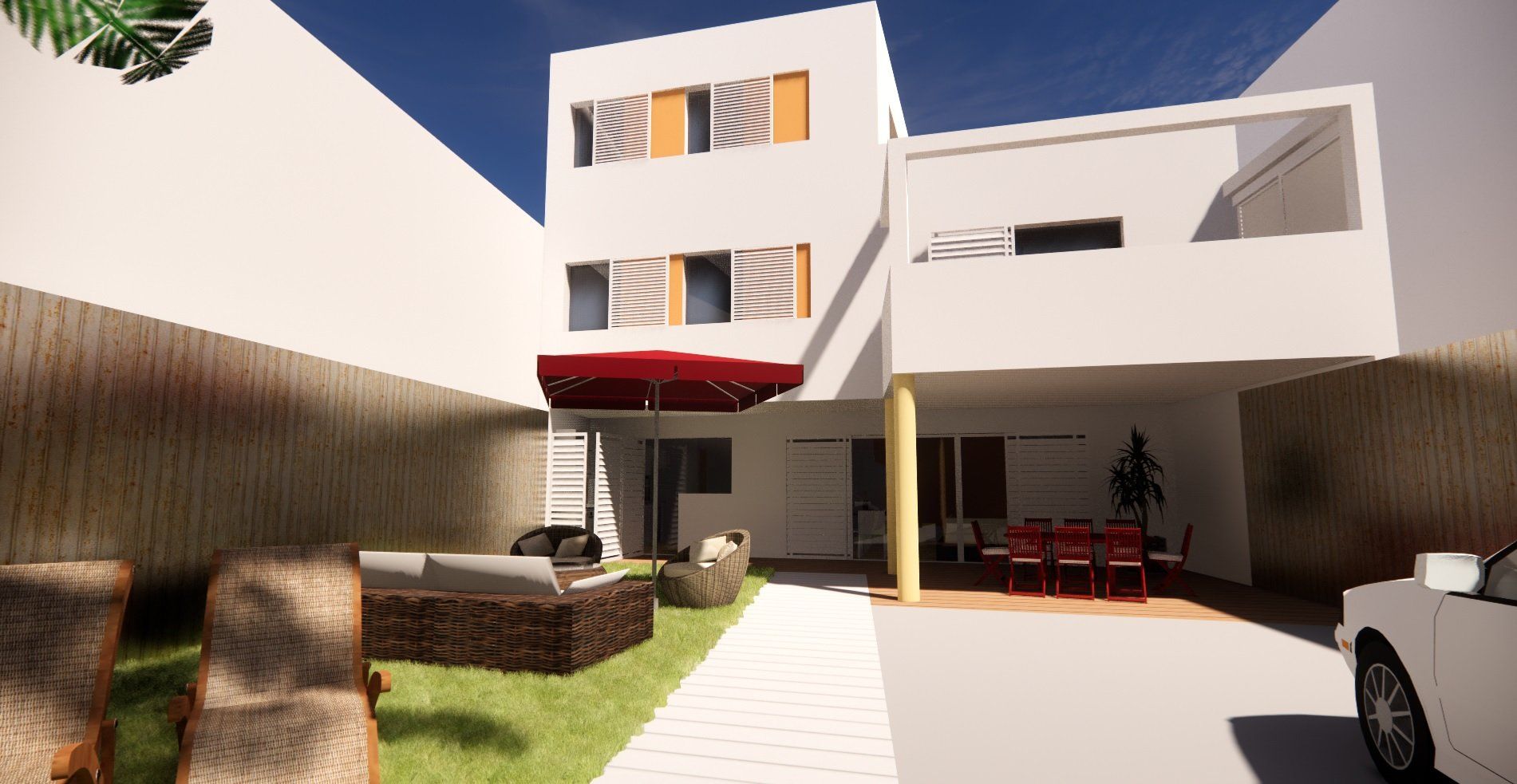 Proyecto de vivienda entre medianeras configurada como una pequeña isla dentro del mar de parcelas de esta zona del casco antiguo de Villarreal. Es un ejercicio de arquitectura integrada en la trama del casco pero aportando un paisaje interior lleno de vitalidad.